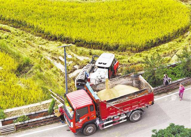 梁平:高山優(yōu)質(zhì)水稻收割忙