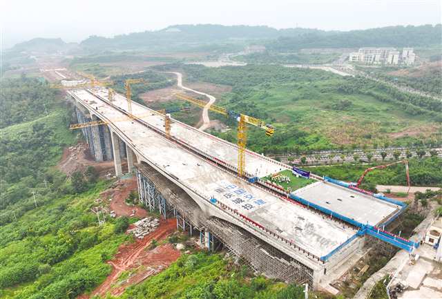 9月9日,重慶高新區(qū)新森大道南段工程桃花湖大橋施工現(xiàn)場(chǎng),重慶建工三建的施工人員正在加緊作業(yè)。 新森大道南段工程全長(zhǎng)約13km,起于小康路,經(jīng)巴福、白市驛及金鳳后,止于鳳苑路,為城市主干路,車行道寬度按雙向六車道+慢行道實(shí)施。…