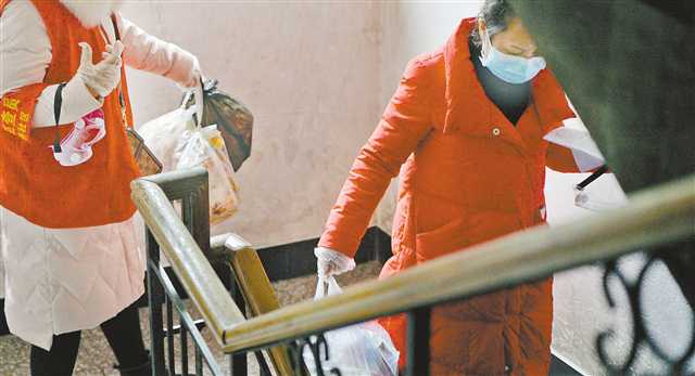 2月2日,在兩江新區(qū)人和街道邢家橋社區(qū),社區(qū)工作人員在排查中順便把居民的垃圾帶下樓,讓居民盡量少出門。本組圖片均由記者張錦輝攝