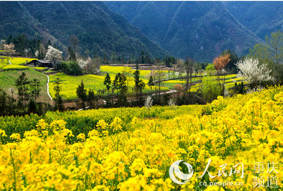 人民網(wǎng)重慶4月2日電 春光中,站在重慶城口縣蓼子鄉(xiāng)梨坪村半山上,放眼望去,一幅秀麗的大巴山鄉(xiāng)村美景圖躍然紙上。3月中旬至5月,這里1500余畝油菜花相繼綻放,農(nóng)旅融合發(fā)展促進(jìn)群眾增收致富奔小康。
