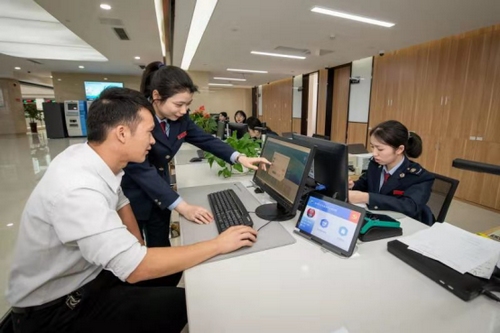 湖州市南潯區(qū)稅務(wù)局工作人員指導(dǎo)納稅人登陸“電子稅務(wù)局”進(jìn)行網(wǎng)絡(luò)辦稅。沈勇強(qiáng)攝