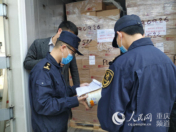 重慶海關開箱檢驗捐贈奶粉。重慶兒童救助基金會供圖
