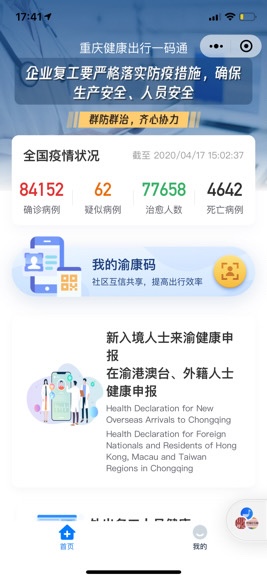經(jīng)過(guò)7天的連夜奮戰(zhàn),“渝康碼”于2月19日正式上線(xiàn),覆蓋全市范圍。市民可憑“渝康碼”出入小區(qū)、辦公樓宇、商場(chǎng)市場(chǎng)、交通卡口、醫(yī)院、公共交通、學(xué)校等場(chǎng)所。