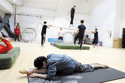 “終于可以回來練功了!”對25歲的陶夕林來說,雜技團(tuán)的排練廳就像自己家一樣熟悉。她從7歲開始練雜技,擅長柔韌性項(xiàng)目,已是團(tuán)里資格最老的“老演員”之一,“這還是我頭一回離開排練廳這么長時間!