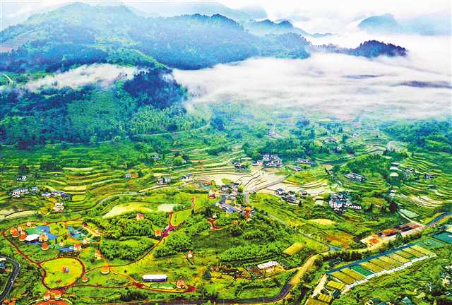 4月21日,萬盛叢林鎮(zhèn)晨霧繚繞,鄉(xiāng)村綠意盎然,景色美不勝收。近年來,萬盛加快采煤沉陷區(qū)生態(tài)環(huán)境修復(fù),通過規(guī)模植綠行動和礦山地質(zhì)環(huán)境治理以及水資源恢復(fù)、土地整治等,讓青山綠水重回山鄉(xiāng)。特約攝影 曹永龍