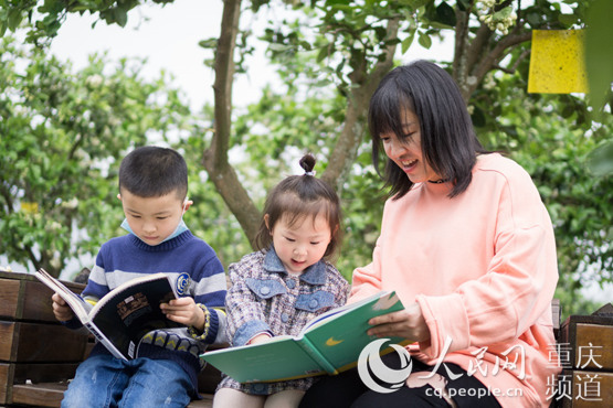 市民在柚樹下感受書香。梁平區(qū)圖書館供圖