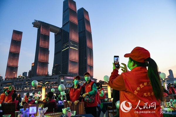 當(dāng)晚7時(shí)左右,100余名醫(yī)務(wù)工作者、防控志愿者、社區(qū)工作者、街道環(huán)衛(wèi)工、公安民警在朝天門2 碼頭,經(jīng)過(guò)測(cè)溫、安檢后,登上了交運(yùn)明月游船。