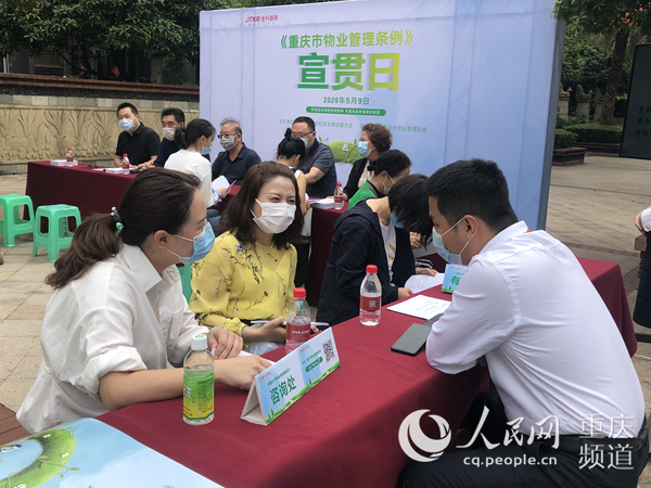 小區(qū)居民咨詢新版《重慶市物業(yè)管理?xiàng)l例》。胡虹 攝