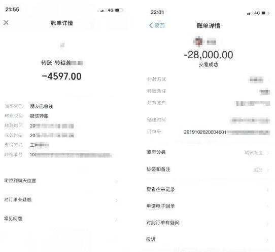 部分轉(zhuǎn)賬記錄截圖
