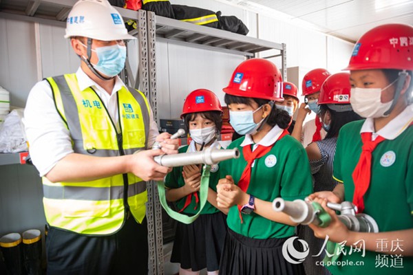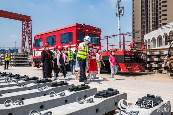 隨后,小朋友們戴著安全帽,在安全員叔叔帶領(lǐng)下走進(jìn)軌道交通9號線青岡坪站施工現(xiàn)場,零距離認(rèn)識了軌道在建工地的微型消防站、軌道車、軌排、龍門架等軌道交通建設(shè)設(shè)施設(shè)備,感受重慶軌道交通建設(shè)加速度。