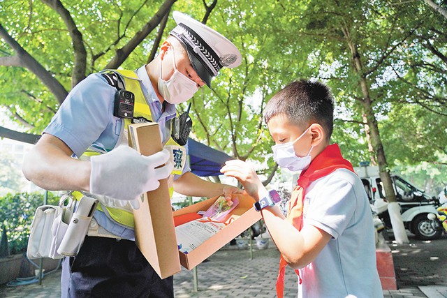 原來,重慶市人民小學(xué)舉行“抗疫英雄 感恩有您”“六一”主題教育活動,組織全校1230名學(xué)生走訪尋找身邊的抗疫英雄,并表達敬意。29日上午,學(xué)生們寫下感恩祝福語,自備一份小禮物,由學(xué)校統(tǒng)一組織快遞小哥,將這份特別的心意分別送到520名醫(yī)務(wù)工作者、警察、社區(qū)工作人員的手中。