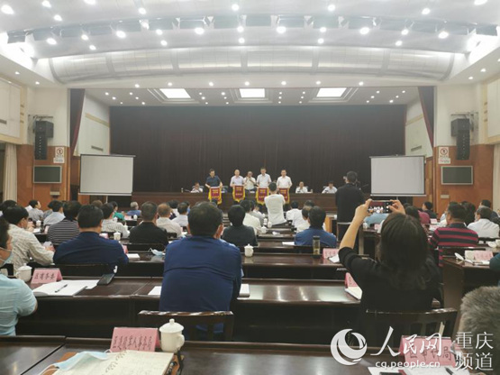 會上,向正陽街道、水市鄉(xiāng)、區(qū)教委、區(qū)直機(jī)關(guān)工委等單位授予紅旗。蘭曉俊 攝