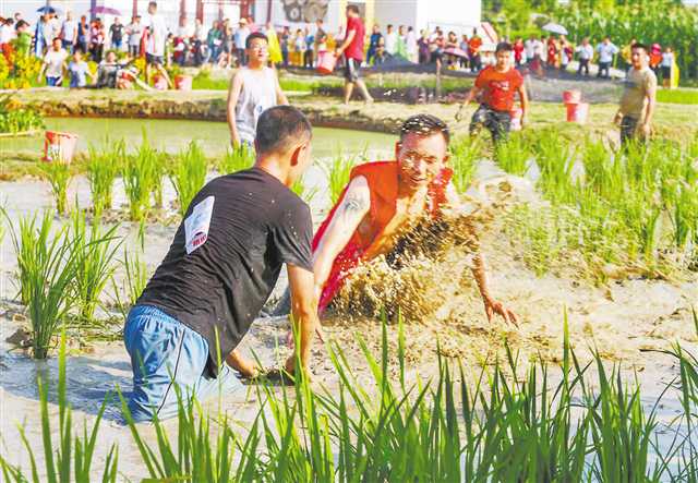 墊江縣沙坪鎮(zhèn)畢橋村舉行的“鄉(xiāng)愁文化季·鄉(xiāng)愁之夏——千人稻田渾水摸魚”全民狂歡活動上,游客在體驗稻田摸魚的樂趣。(本報資料圖片)通訊員 向曉秋 攝/視覺重慶