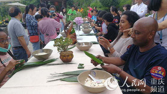 人民網(wǎng)重慶6月14日電 包粽子、打糍粑、制作五谷貼畫、體驗中國書法,14日,2020年“老外@Chongqing·體驗非遺暨老外游鄉(xiāng)村”第五期活動走進巴南區(qū)石灘鎮(zhèn),通過形式多樣、內(nèi)容豐富的交流,來自韓國、埃塞俄比亞等國家和地區(qū)的外國友人,親身體驗了巴南生態(tài)文明和鄉(xiāng)村振興的建設(shè)成果。