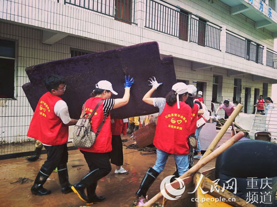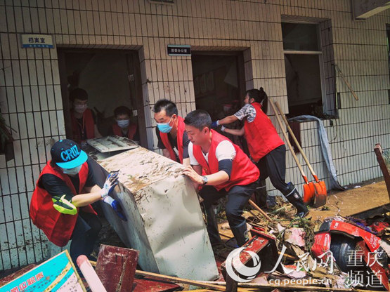 人民網(wǎng)重慶6月15日電 “我們現(xiàn)在正在突擊辦公區(qū)域,先想辦法一個(gè)個(gè)把辦公室門打開,將水放出去,再把有用物資轉(zhuǎn)移到外面。”青年志愿者鄭菊說(shuō)。
