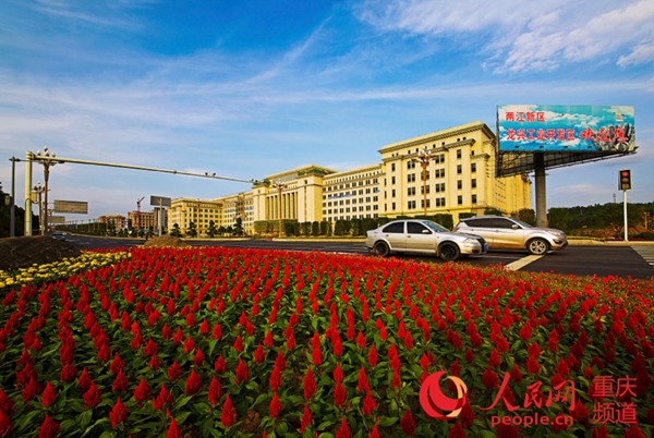 兩江新區(qū)兩江大道花兒紅。張華攝(兩江新區(qū)管委會 供圖)