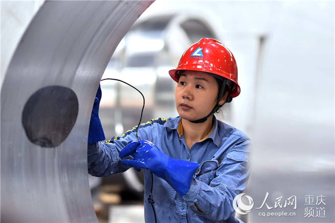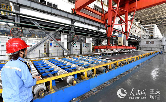 中鋁西南鋁工人在高精尖鋁材生產(chǎn)線上工作。李影 攝