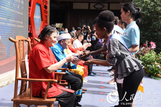 在今天活動現(xiàn)場,舉行了老外@Chongqing·體驗非遺拜師儀式,喻良華、唐佑倫等非遺傳承人集體登臺,接受來自俄羅斯、赤道幾內亞、盧旺達、貝寧等多個國家“非遺”學徒代表遞上的“拜師帖”,并喝下拜師茶,正式收下2020年“老外@Chongqing·體驗非遺”活動中的首批徒弟。