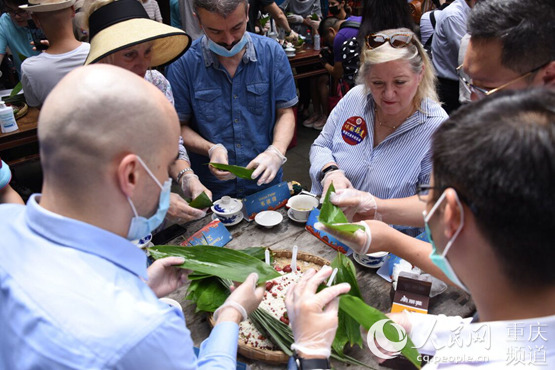 人民網(wǎng)重慶6月24日電 24日一早,重慶巴南區(qū)豐盛古鎮(zhèn)熱鬧了起來,由中共重慶市委宣傳部(市政府新聞辦)、市文化旅游委和巴南區(qū)委、區(qū)政府聯(lián)合主辦,巴南區(qū)委宣傳部、區(qū)文化旅游委、團區(qū)委、豐盛鎮(zhèn)共同承辦的“2020年老外@Chongqing·體驗非遺暨我們的節(jié)日·端午活動”在一首歡快的木洞山歌中拉開帷幕。多國駐渝總領事館的嘉賓,以及交通大學留學生,在渝工作、生活的18國外國友人參加活動。