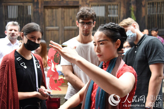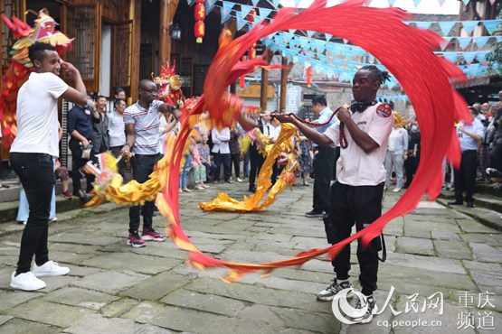 “涼風繞繞天要晴啰依喲喂,幺妹啰清早啰出了的喲門喲啰依喲嗬喲……”活動舞臺上,4名外國友人和中國搭檔開始了他們精彩的表演,這是他們今年在重慶學習中國的非遺文化后的第一次演出。