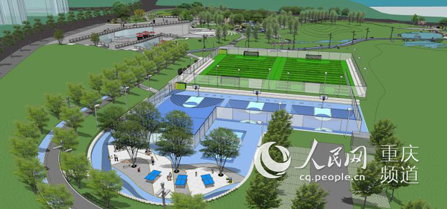 在建中的彈子石社區(qū)體育文化公園設計方案部分區(qū)域效果圖。 重慶市規(guī)劃和自然資源局供圖