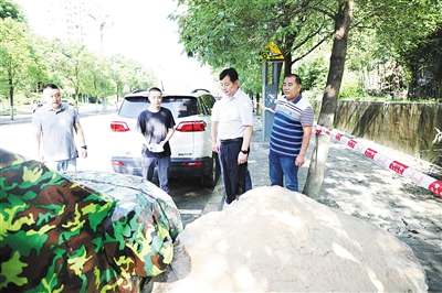 萬盛經(jīng)開區(qū)城市管理局局長譚彬(右二)帶隊(duì)開展“馬路辦公”。余江波 攝