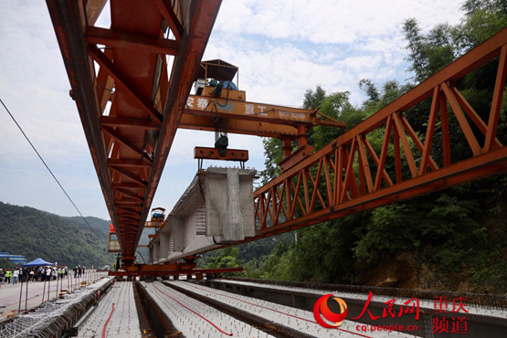 城開高速溫泉特大橋T梁實(shí)現(xiàn)架通。重慶高速集團(tuán)供圖