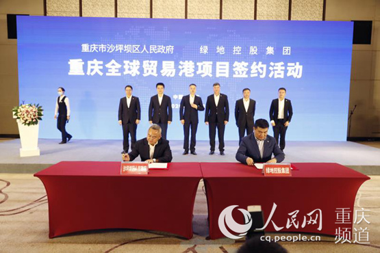 人民網(wǎng)重慶8月6日電 6日下午,重慶市沙坪壩區(qū)與綠地控股集團就重慶全球貿(mào)易港項目簽訂合作協(xié)議。