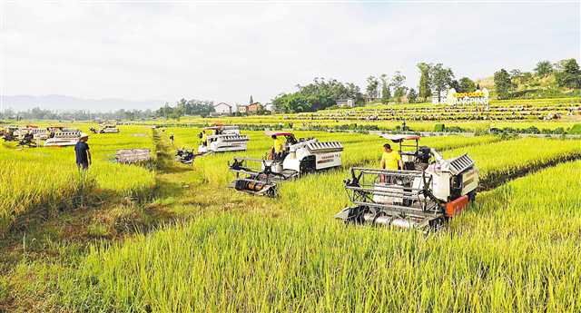 “開鐮刀啰!開鐮刀啰!……”當(dāng)天上午,隨著陣陣喜慶的歡呼聲,梁平大壩子“上演”千人開鐮的壯觀景象,新農(nóng)人和數(shù)十臺自動收割機(jī)聯(lián)合拉開渝東平原開鐮的序幕。