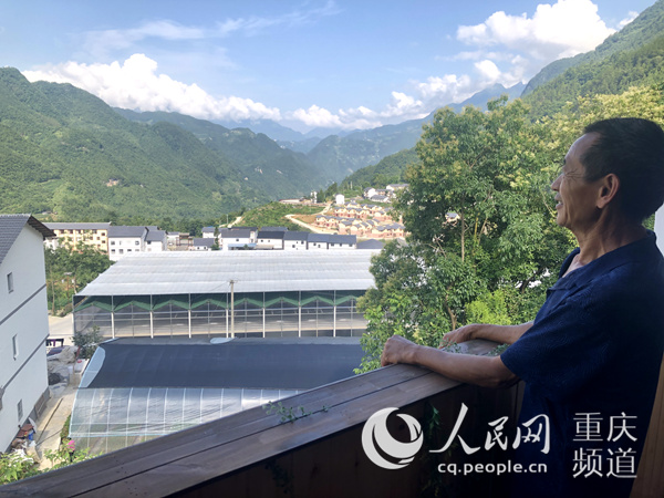 張余國在自家農(nóng)家樂的陽臺眺望茶山村的美景。羅嘉 攝