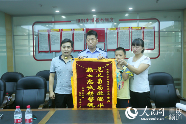 王先生攜家人給民警送錦旗。渝中警方供圖