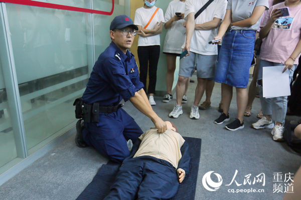 戰(zhàn)訓基地教官現(xiàn)場演示專業(yè)急救方法。渝中警方供圖