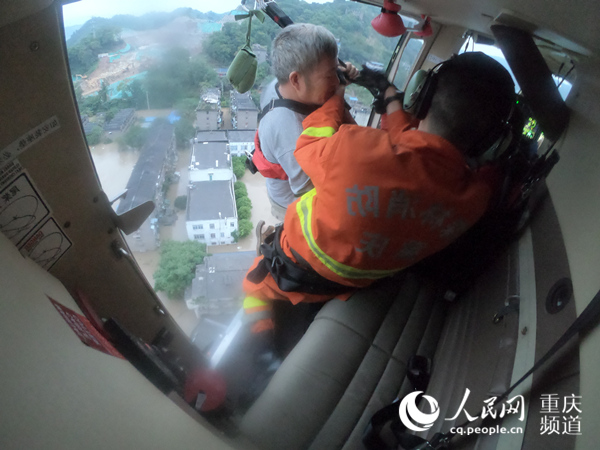 重慶出動直升機營救被困市民。重慶市航空應急救援總隊供圖