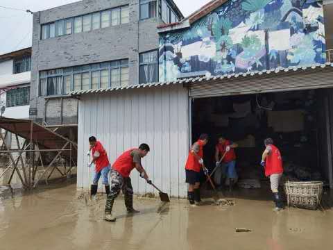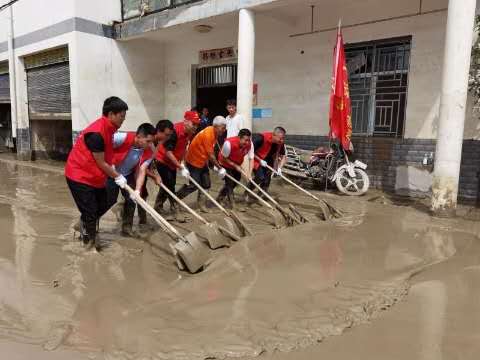 洪水漸退,受災區(qū)域聚集大量淤泥,全區(qū)各個部門單位迅速組建黨員志愿隊,幫助受災地區(qū)開展災后重建,黨員干部沖鋒在前、聚心凝力,人民群眾備受鼓舞、同向而行,主動參與災后重建志愿服務(wù)。