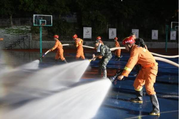 8月22日零點過,在長壽二中,區(qū)消防救援支隊的指戰(zhàn)員們與當?shù)匚渚俦黄,對操場上的淤泥進行沖刷!敖裉炝璩恐畠(nèi)必須將這里清掃干凈,確保后期學校順利開展災(zāi)后恢復(fù)工作”,現(xiàn)場消防指戰(zhàn)員焦汝寬表示。