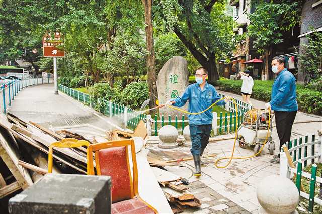 消殺 8月22日,渝中區(qū)大溪溝街道,工作人員正在對(duì)垃圾進(jìn)行消殺。記者 謝智強(qiáng) 攝/視覺重慶