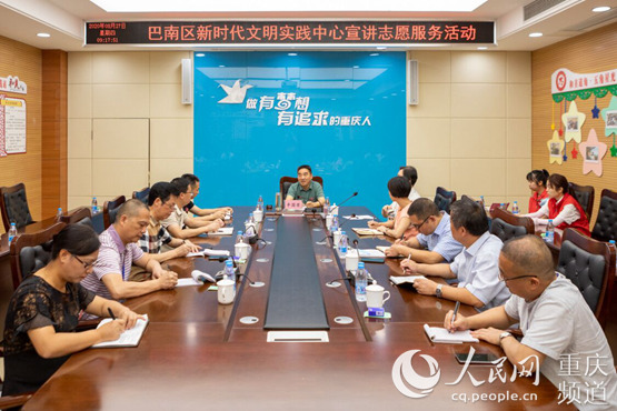 巴南區(qū)委書記辛國榮為廣大志愿者開展宣講。何洲行攝