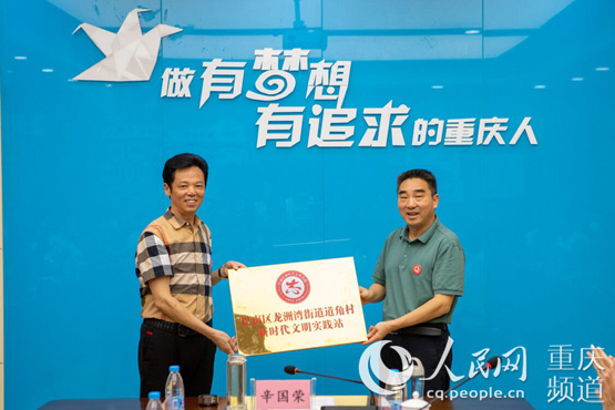 巴南區(qū)委書記辛國榮(右)為道角村新時代文明實踐站授牌。何洲行攝