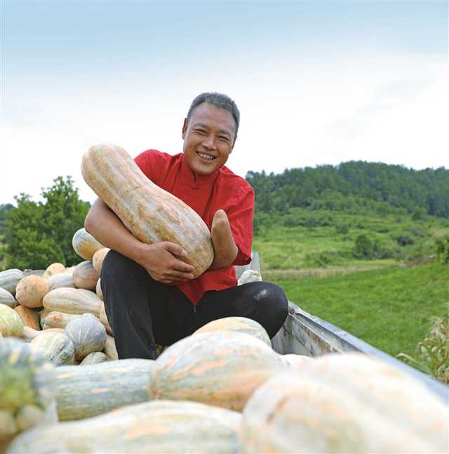 楊忠是脫貧戶,今年,在他的帶動(dòng)下,趙昌信種了10畝蜜本南瓜。像趙昌信一樣,今年在楊忠的帶動(dòng)下,當(dāng)?shù)?0多戶村民種植了蜜本南瓜,共計(jì)1300多畝。