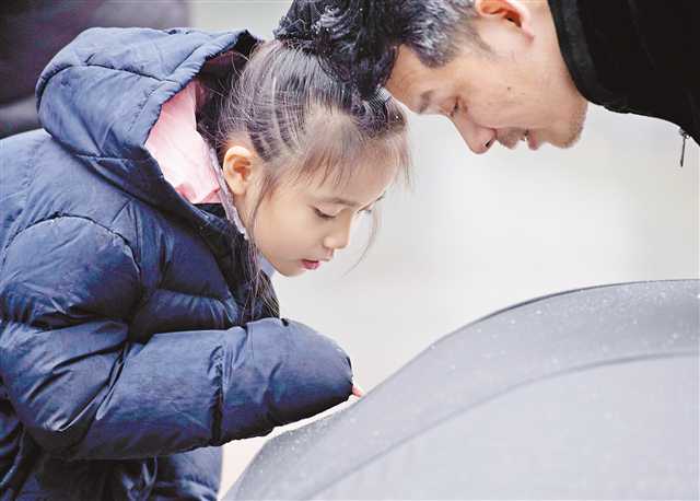 市民在南岸區(qū)南山觀察落在雨傘上的雪花。記者 謝智強 實習(xí)生 熊香琳 攝/視覺重慶
