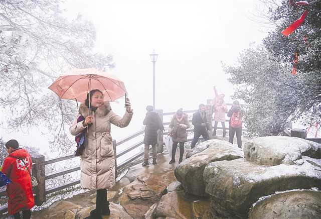 游客在北碚區(qū)縉云山獅子峰上賞雪。記者 萬難 攝/視覺重慶
