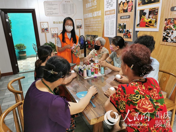 沙坪壩區(qū)民政局《社區(qū)能人坊 自治增活力》案例,手工能人徐麗蕓教手工制作。 沙坪壩區(qū)民政局供圖