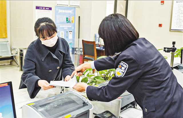 1月11日,重慶市新牌坊派出所戶(hù)籍身份證辦理大廳,顏小雙在戶(hù)籍民警幫助下辦理戶(hù)口遷移。記者 何賽格 攝/視覺(jué)重慶