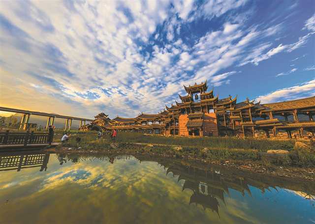賞風(fēng)雨廊橋:廊橋是黔江地域文明中最浪漫的符號。濯水風(fēng)雨廊橋,橋梁全木卯榫,飛檐翹角,橫跨阿蓬江,再跨蒲花河,全長658米,有濯河懷遠(yuǎn)、金鐘飛韻、長虹臥波、蒲花龍吟景致,亭閣相銜其間,楹聯(lián)輝映其里,號稱“世界第一風(fēng)雨廊橋”“中國楹聯(lián)文化名橋”。