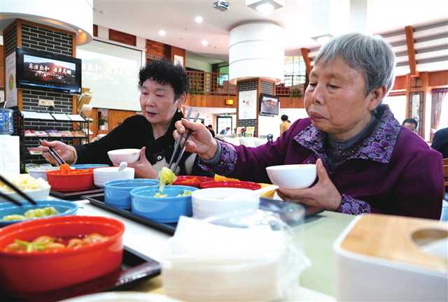 老人們?cè)谏鐓^(qū)養(yǎng)老服務(wù)站享用午餐 攝/霍呂