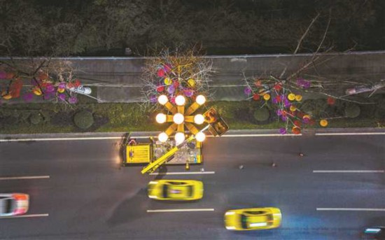 1月15日,南濱路,南岸區(qū)照明管理處的工人正在測試維修后的路燈。