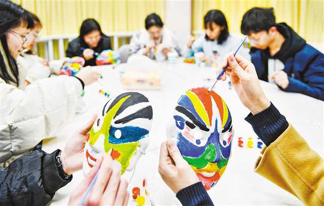 1月27日,西南大學(xué)心理健康教育與服務(wù)中心,部分留校學(xué)生正在進(jìn)行“繪畫靜心”活動,通過在臉譜上涂色表達(dá)自己的情緒。記者 齊嵐森 攝/視覺重慶