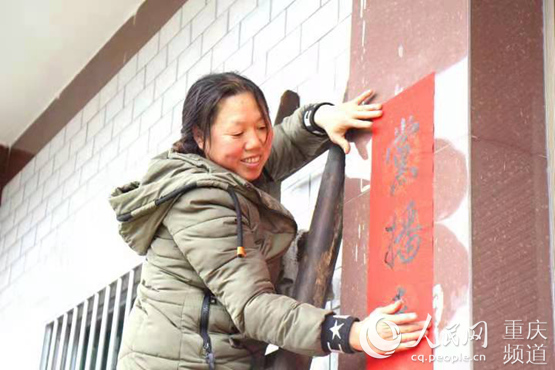 人民網(wǎng)重慶1月31日電 “上聯(lián):大好河山施善政,下聯(lián):小康歲月涌春潮,橫批:脫貧夢(mèng)圓”。1月29日,重慶彭水的杜遠(yuǎn)和剛拿到這副春聯(lián),就迫不及待的貼到了自家的大門上。