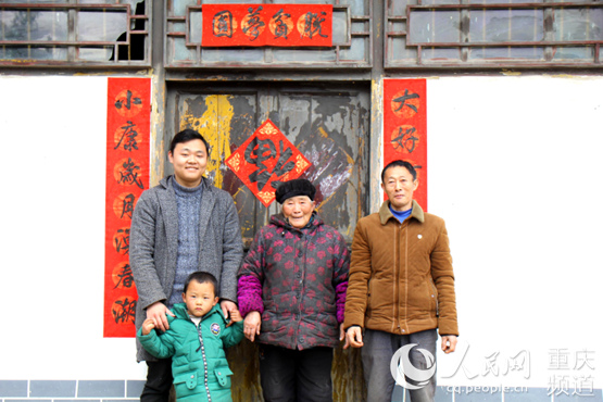 貼好春聯(lián)后在門外合影留念。 彭水自治縣融媒體中心供圖