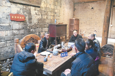 武夷山市信訪評(píng)理員立足當(dāng)?shù)匚幕,在“茶室評(píng)理室”中與信訪人喝茶聊天,開(kāi)展評(píng)理。